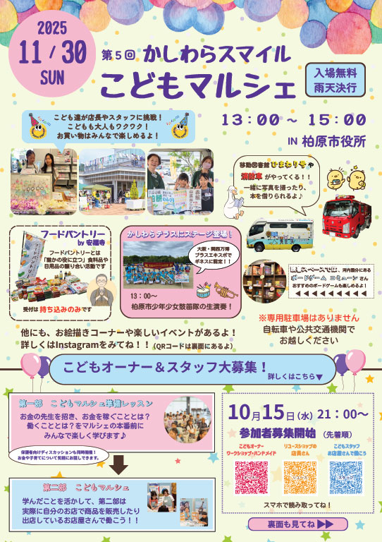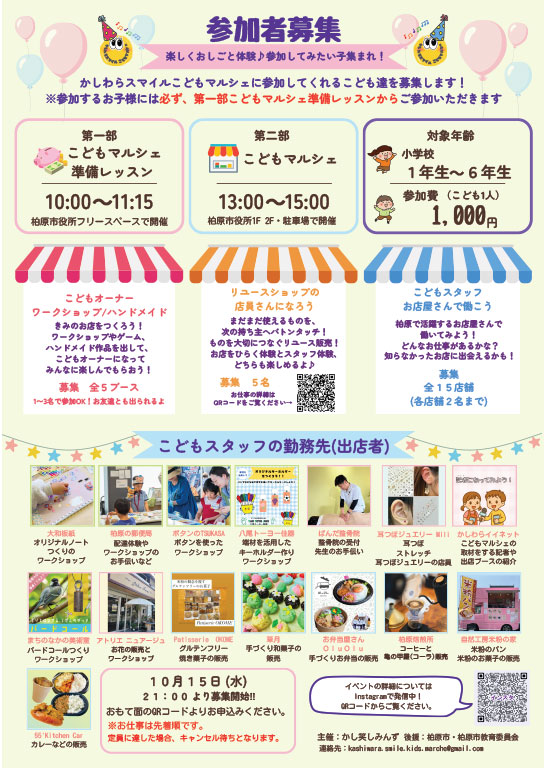 「第5回かしわらスマイルこどもマルシェ」に参加します!