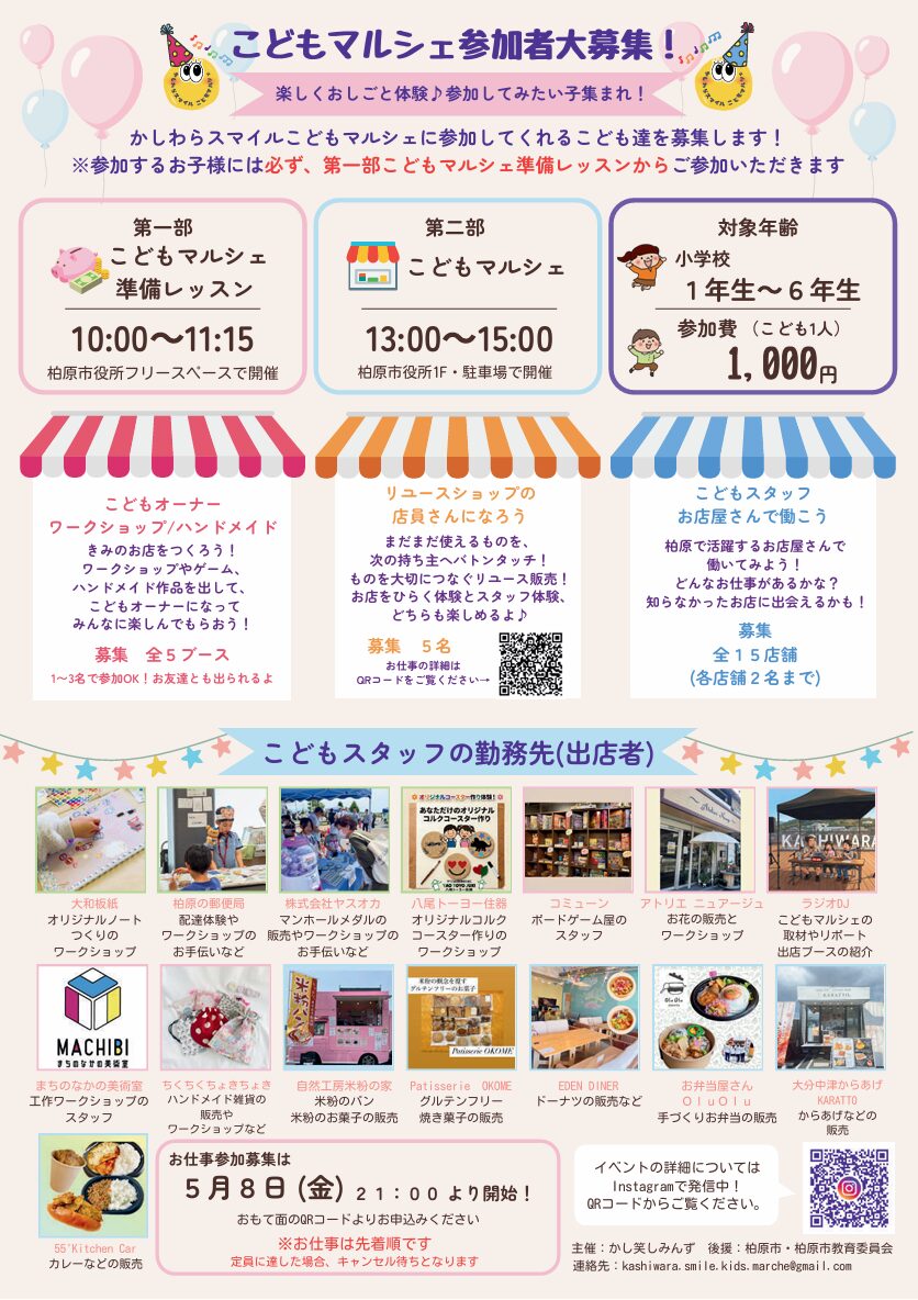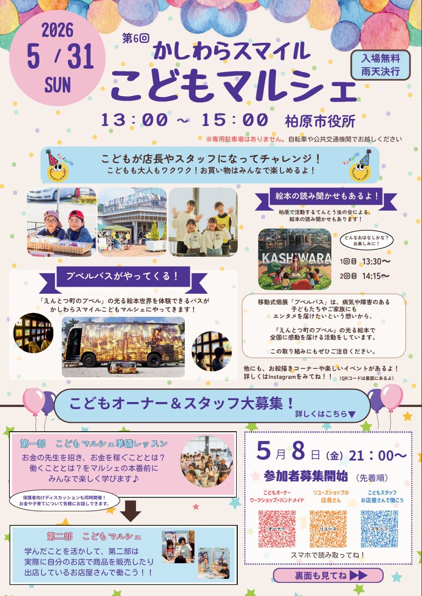 かしわらスマイル こどもマルシェに参加します。